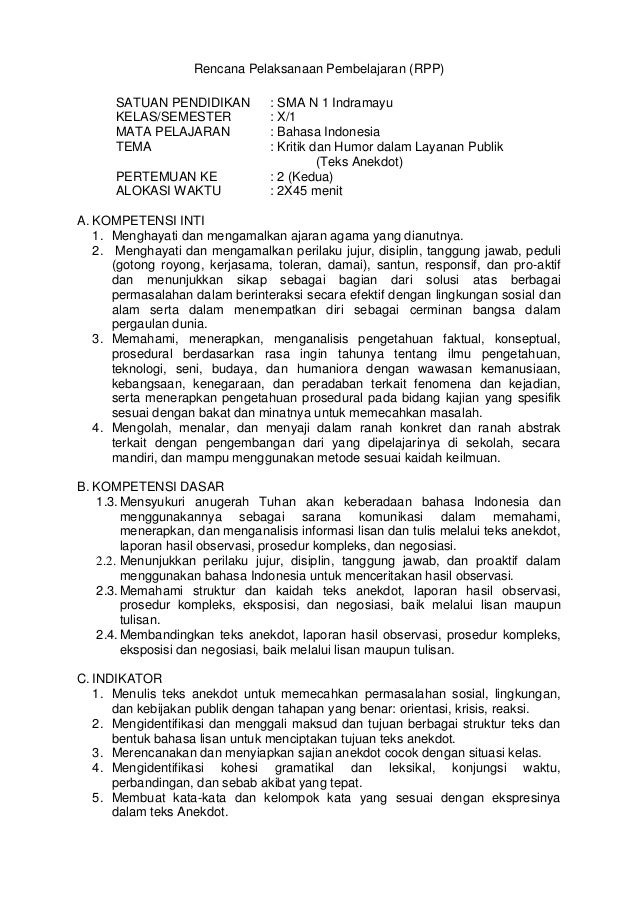 Rpp Bahasa Indonesia Kelas 10